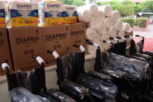 Durante el acto protocolario se entregaron más de 7 mil 500 insumos médicos, 25 sillas de ruedas, 11 bastones, tres andaderas, una silla de baño y seis muletas que serán de gran beneficio para la población huejutlense, informó el secretario del Despacho del Gobernador, Alejandro Velázquez Mendoza.