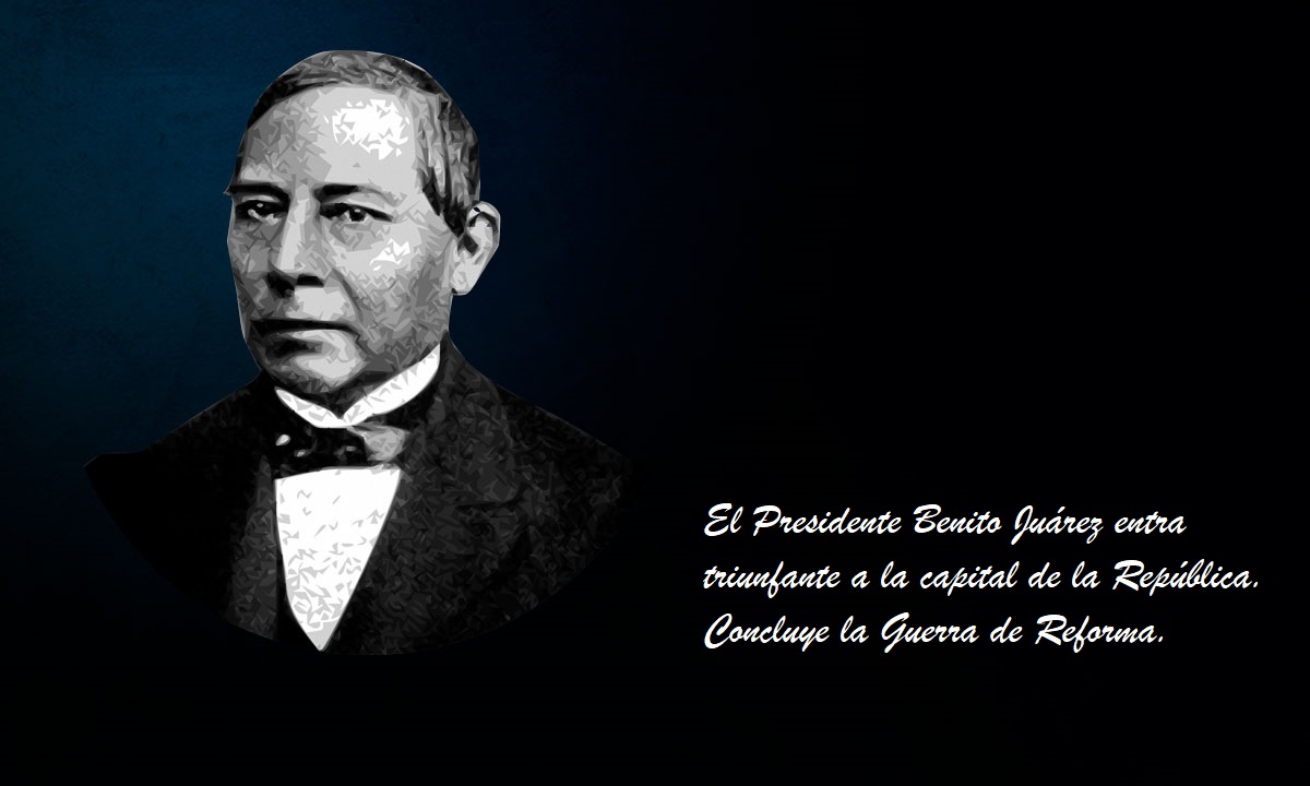 1861.- El Presidente Benito Juárez entra triunfante a la capital de la República. Concluye la Guerra de Reforma.
