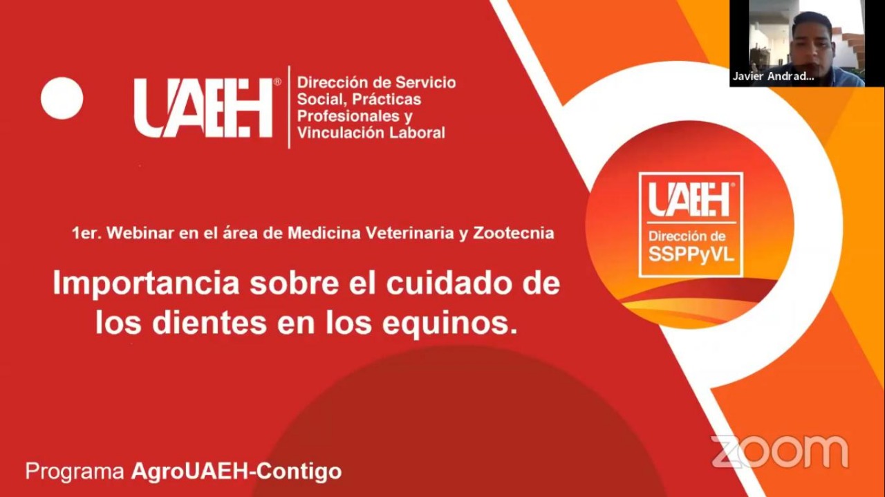 El Webinar “Importancia sobre el cuidado de los dientes en los equinos”, de Javier Andrade, se puede visualizar en https://www.facebook.com/SSocialUAEH/videos/140572681234780 .