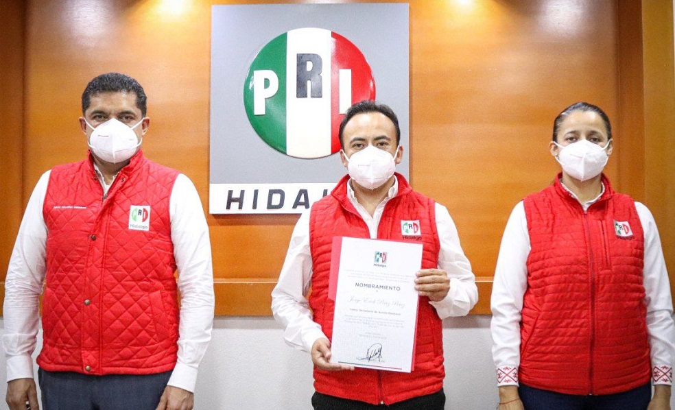 Pachuca de Soto, Hgo., a 14 de abril de 2021.- La dirigencia del Comité Directivo Estatal (CDE) de Partido Revolucionario Institucional (PRI) en Hidalgo, que encabeza Julio Valera Piedras y Paola Domínguez Olmedo, presidente y secretaria general, respectivamente, dio nombramiento a Jorge Erick Pérez Pérez para desempeñar el cargo como nuevo titular de la Secretaria de Acción Electoral.