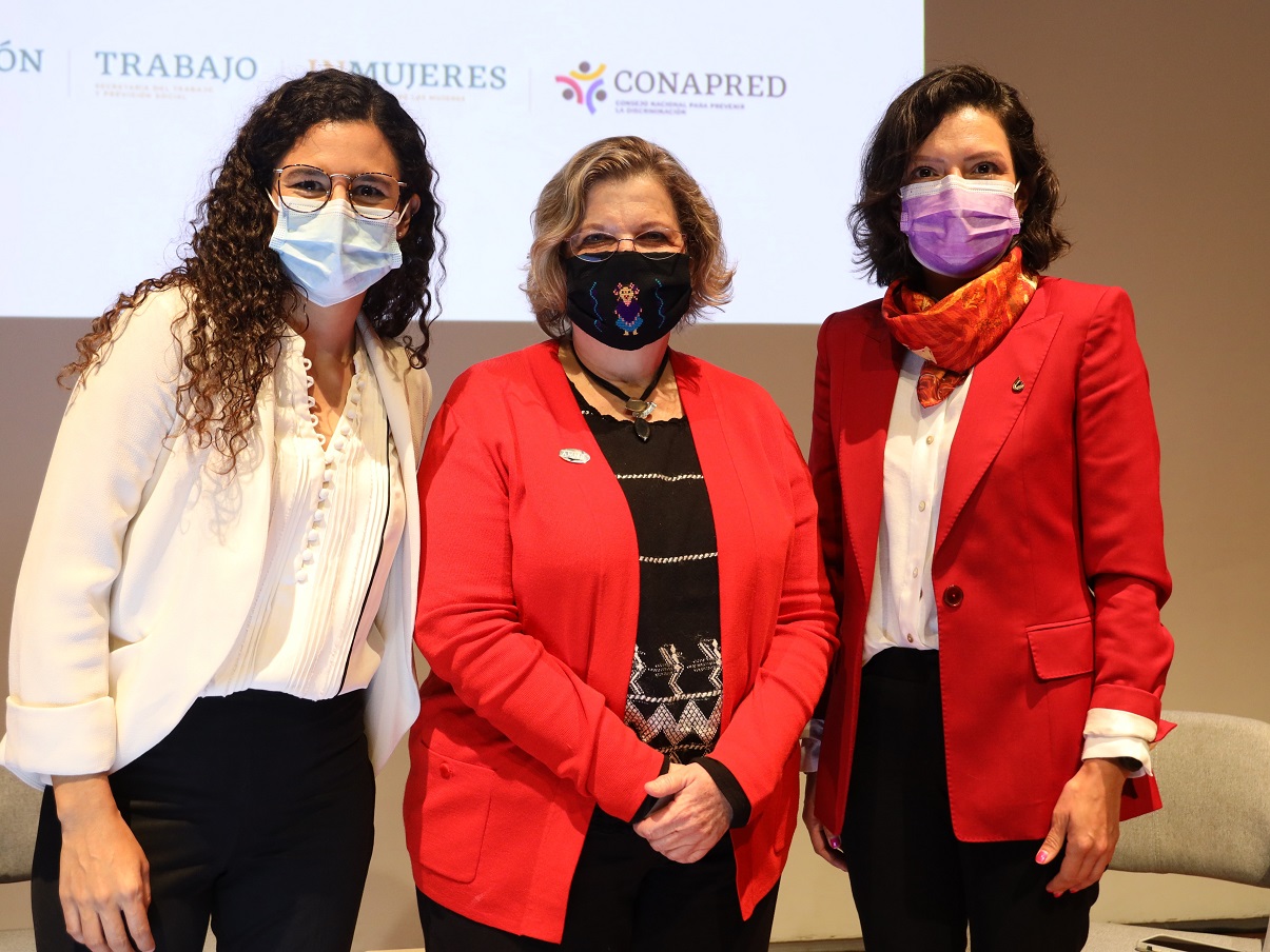 Durante un evento presidido por la secretaria del Trabajo, Luisa María Alcalde Luján; la presidenta del Inmujeres, Nadine Flora Gasman Zylbermann, y la encargada de despacho del Conapred, Irasema Yazmín Zavaleta Villalpando, Agueda Galván Abraham, titular del Órgano Interno de Control, y Alejandra Icela Martínez Rodríguez, subdirectora general de Administración, recibieron a nombre de la Comisión el reconocimiento por el cumplimiento de la Norma Mexicana en Igualdad Laboral y No Discriminación.