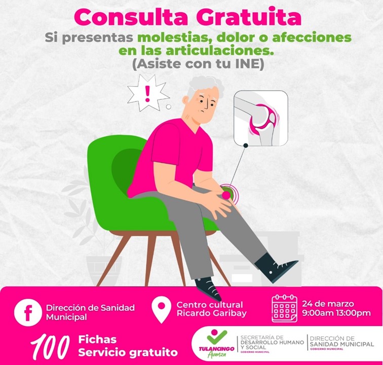 Tulancingo, 13 de marzo del 2023.- En virtud de que el estado de las articulaciones, no es un tema de prioritaria atención para la ciudadanía, aún y cuando se registra dolor ocasional o permanente, la Dirección de Sanidad Municipal en alianza con la clínica de la rodilla Doctor Díaz Campuzano, efectuarán este 24 de marzo la primera campaña de diagnóstico sobre afecciones en esta parte del cuerpo.