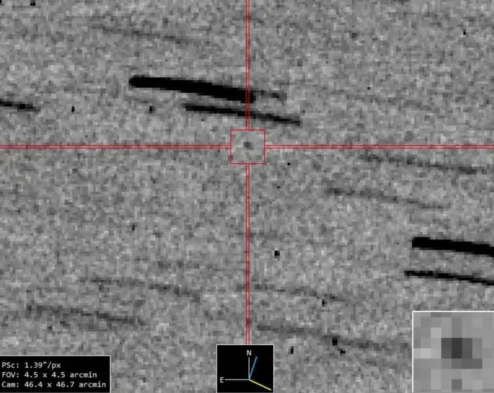 Observado el 16 de septiembre por el telescopio de la Estación Óptica Terrena (OGS) de la ESA en Tenerife, Osiris-REx se encontraba a 4.66 millones de kilómetros de la Tierra. Viaja a 23 mil kilómetros por hora.