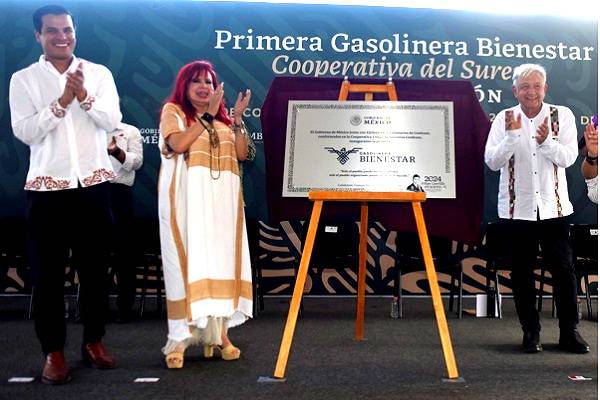 En el mismo evento, la secretaria de Medio Ambiente y Recursos Naturales, María Luisa Albores González, afirmó que la construcción de la Gasolinera Bienestar en Conhuas derivó de las solicitudes recibidas a través de las consultas del Tren Maya para fortalecer la economía social y solidaria buscando que el ejido se incorpore a un modelo cooperativista y desarrollo económico incluyente.