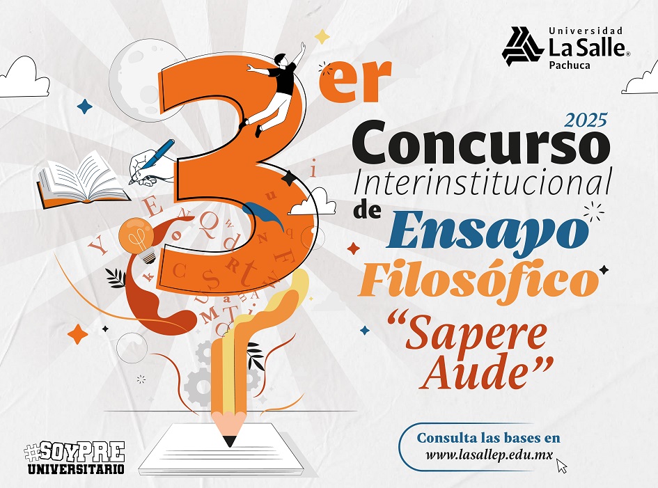 Pachuca de Soto, Hidalgo; 18 de febrero de 2025.-La Universidad La Salle Pachuca reafirma su compromiso con la educación y la difusión del conocimiento más allá de sus aulas, ofreciendo espacios de participación para estudiantes de diversas instituciones. En este marco, invita a estudiantes de bachillerato del Estado de Hidalgo a formar parte del 3er Concurso Interinstitucional de Ensayo Filosófico 2025, un certamen que busca fomentar el pensamiento crítico y la reflexión sobre temas filosóficos de gran relevancia.