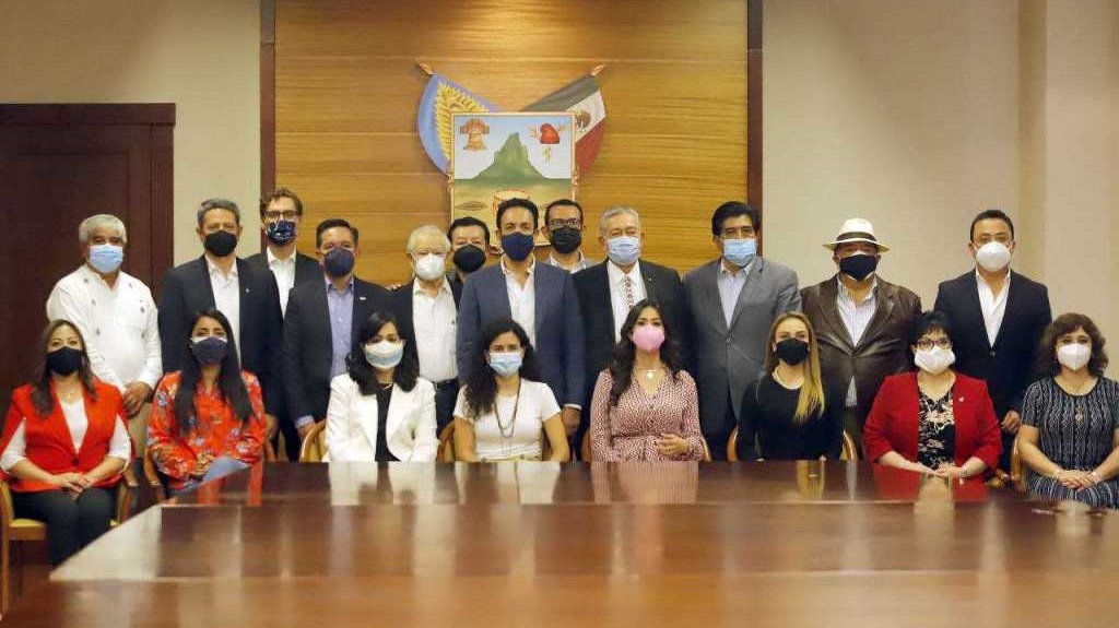Pachuca, Hgo., 18 de julio del 2021.- El gobernador de Hidalgo, la titular de la Secretaría del Trabajo y Previsión Social (STPS) del Gobierno de México; la secretaria del Trabajo y Previsión Social de Hidalgo (STPSH) y la titular del Poder Judicial en la entidad, sostuvieron una reunión técnica y de evaluación donde se abordaron temas referentes al nuevo modelo laboral.