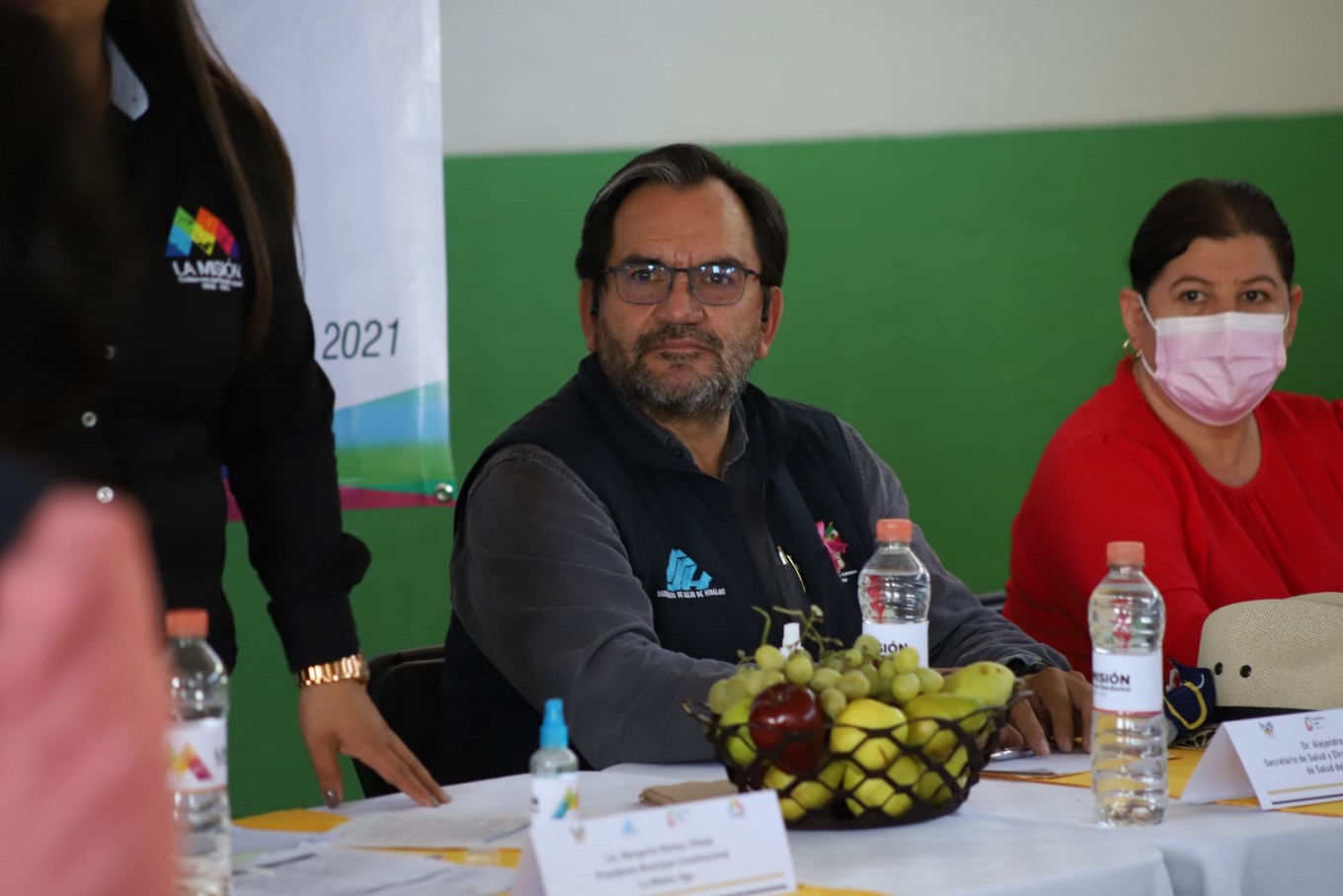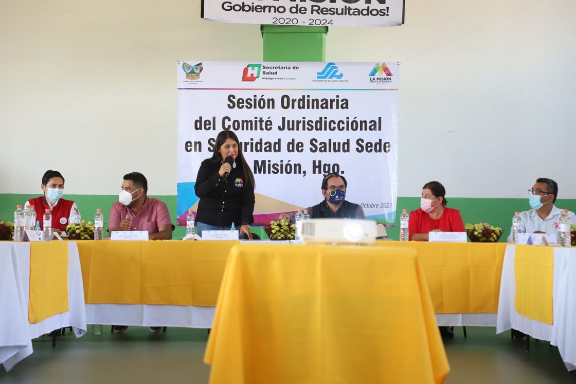Pachuca, Hidalgo., a 27 de octubre de 2021.- Tocó el turno al municipio de la Misión perteneciente a la Jurisdicción Sanitaria de Jacala de la Secretaría de Salud Hidalgo (SSH), ser punto de reunión de autoridades sanitarias y municipales para la evaluación de acciones para mitigar los riesgos ante la pandemia por COVID19.
