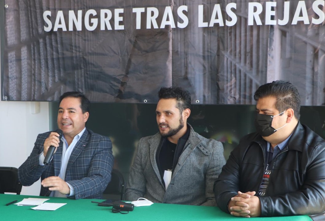 Pachuca, Hgo., 29 de noviembre del 2021.- En rueda de prensa el secretario de Turismo, Eduardo Javier Baños Gómez, acompañado de Eduardo Castillo, Productor, Alan Cancino, Actor y Productor, además de, Daniel Álvarez, Director, dieron a conocer los detalles de la serie “Sangre tras las rejas” la cual tendrá como locación principal el municipio de Tula de Allende y mostrará los atractivos turísticos con los que cuenta esta región.