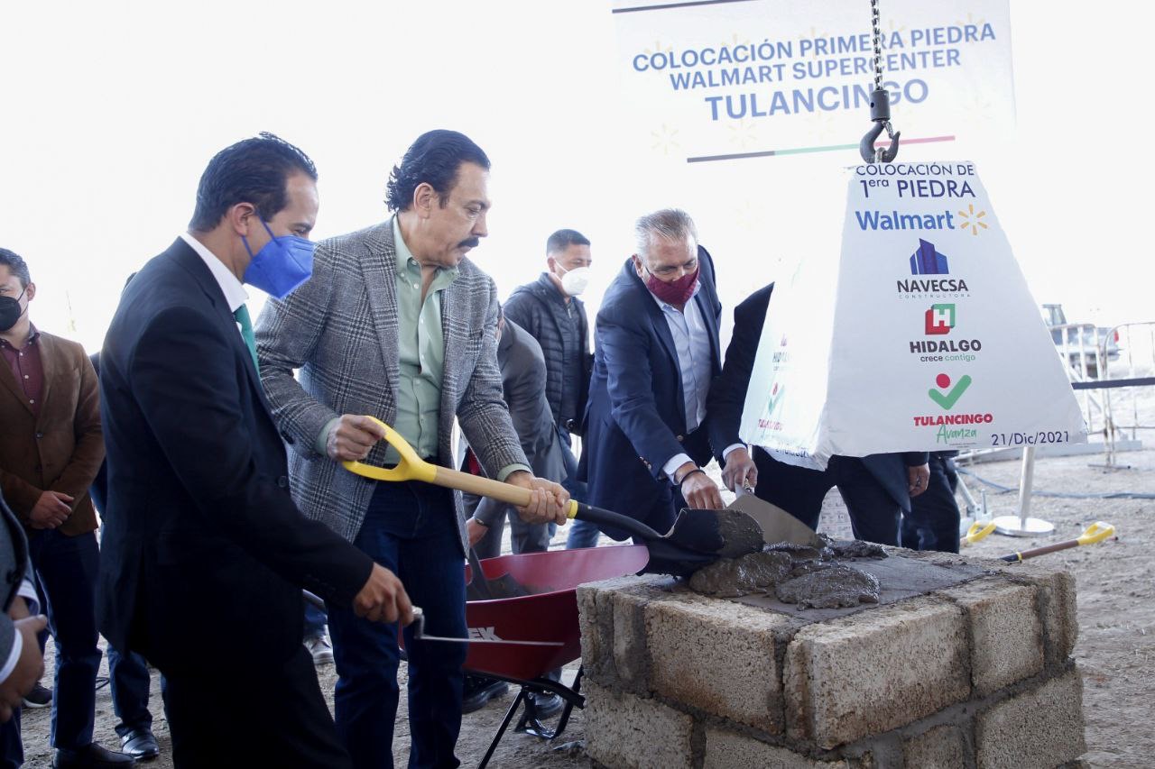 Posteriormente, en Tula, el mandatario estatal también colocó la primera piedra del Walmart Supercenter de esta ciudad.