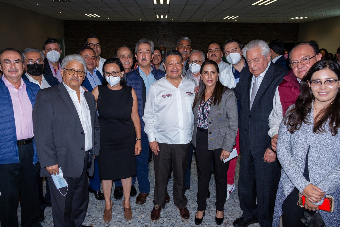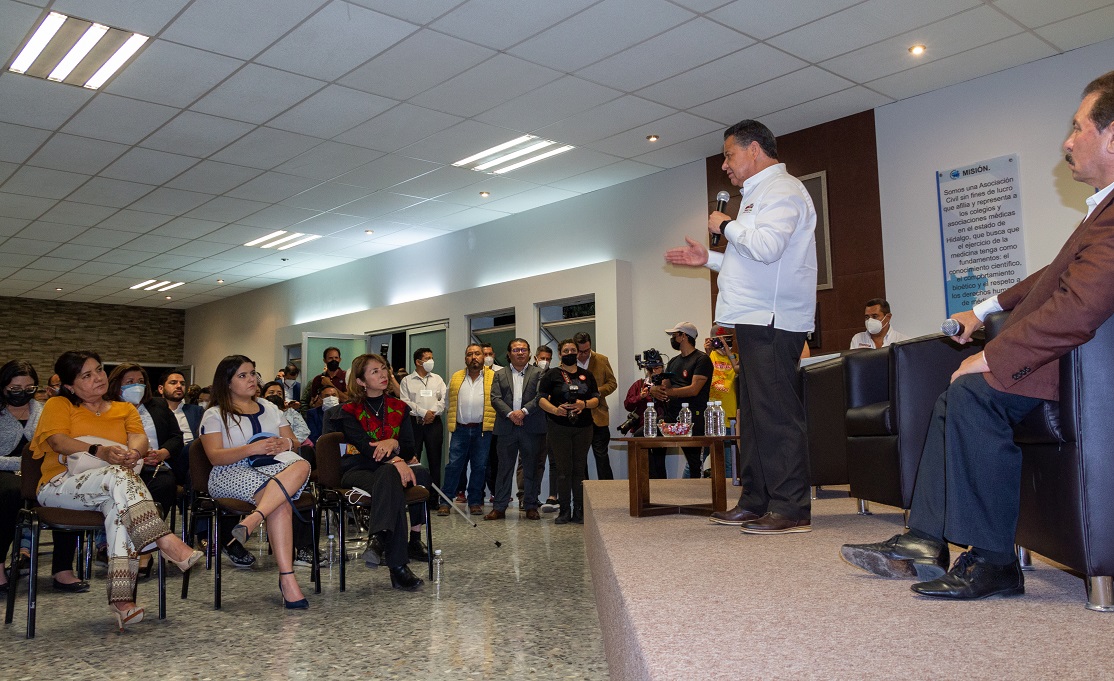 Pachuca de Soto, Hidalgo, a 29 de abril de 2022.- Julio Menchaca Salazar, candidato a gobernador por Morena, Partido Nueva Alianza Hidalgo (PNAH) y Partido del Trabajo (PT), se reunió con integrantes del Colegio Médico de Hidalgo, con quienes se comprometió a fortalecer la infraestructura y mejorar las condiciones para el personal del sector salud del estado.