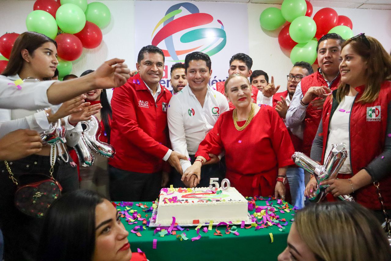 Además, Julio Valera Piedras y Jenny Márquez, presidente y secretaria general del Comité Directivo Estatal, respectivamente, acompañaron al dirigente de Red Jóvenes por México, Cristhian Ruíz del Valle, a partir el pastel por el 50 aniversario de dicha organización.