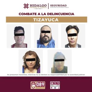 Resultado del despliegue policial en las colonias Nuevo Tizayuca, Unidad Habitacional Tizayuca y fraccionamiento Rancho Don Antonio, se logró la detención de cinco personas, tres hombres y dos mujeres, presuntamente relacionados con el delito de narcomenudeo.