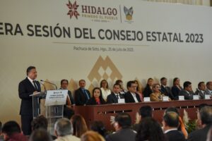 Pachuca de Soto, Hgo., 25 de julio de 2023.- Con el firme propósito de recuperar la paz y la seguridad de Hidalgo, el gobernador, Julio Menchaca, presidió la primera sesión del Consejo Estatal de Seguridad Pública, ocasión en la que se dio a conocer que este organismo autorizó un acuerdo de colaboración con la Secretaría de Educación Pública de Hidalgo (SEPH) a fin de garantizar la capacitación de las y los policías hidalguenses.