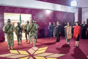 Por la tarde, el mandatario estatal presenció el Arriamiento de la Bandera Nacional, tras el cual manifestó: “Las y los mexicanos nos sentimos orgullosos de nuestros símbolos patrios, pues estos representan nuestra soberanía e independencia”.