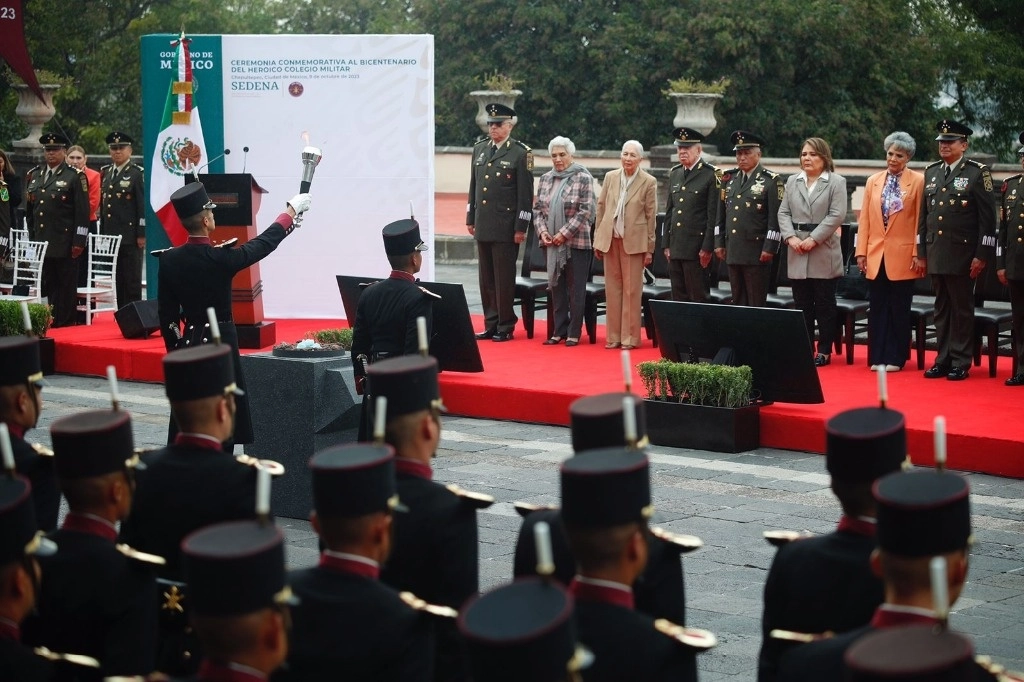 Ciudad de México, 09 de octubre del 2023.- Arribó al Castillo de Chapultepec el Fuego de la Lealtad, símbolo del Heroico Colegio Militar (HCM) que en manos de sus cadetes recorre todas las sedes que, en diversos estados de la República, como parte de los festejos por el bicentenario de la creación de este plantel.