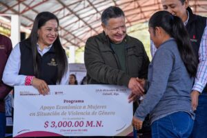 Respecto a los programas dirigidos a mujeres, atestiguó la entrega de los programas “Bienestar de Madres Solteras”, “Bienestar y Desarrollo”, por parte de la Secretaría de Bienestar e Inclusión Social (Sebiso), mientras que el Instituto Hidalguense de las Mujeres (IHM) otorgó apoyos a beneficiarias de siete municipios de la región en situación de violencia, así como para niñas y adolescentes madres o embarazadas, con un monto total de un millón 500 mil pesos.