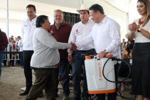 En seguimiento a la entrega de apoyos que beneficien a distintos sectores de la población, Menchaca Salazar atestiguó cómo más de 300 productoras y productores de maguey recibieron de manera simbólica equipamiento que les permitirá desarrollar sus actividades de manera más eficiente.