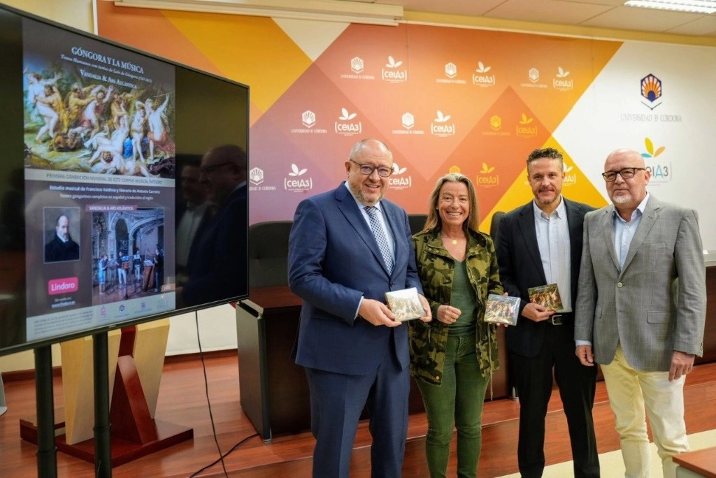 Córdoba, 09 de abril del 2024.- La primera grabación mundial del Cancionero de Luis de Góngora es ya una realidad gracias a la Cátedra Góngora de la Universidad de Córdoba (UCO), que se ha apoyado en el estudio musical de Francisco Valdivia y Antonio Carreira para crear ‘Góngora y la música’, una obra que recoge 39 romances y letrillas, musicados por Vandalia & Ars Atlantica, y que ha sido producida en formato ‘digipack’ y también publicada en las 55 plataformas musicales más conocidas del mundo, incluidas Spotify, Apple Music o Amazon.