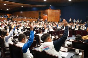 Pachuca de Soto, Hgo., 19 de abril de 2024. Durante la sesión ordinaria del Segundo Congreso Juvenil Hidalgo 2024, el titular del Poder Ejecutivo en Hidalgo, reconoció el esfuerzo de las y los participantes, a quienes conminó a seguir incursionando en la vida pública y política de la entidad.