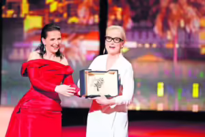 Cannes,15 mayo 2024.- El Festival de Cannes inauguró su 77 edición con las mujeres en el centro de la fiesta fílmica, y en una jornada marcada también por protestas feministas del gremio del cine.  Del lado festivo, la actriz Meryl Streep recibió la Palma de Oro de Honor a su carrera y Greta Gerwig se convirtió en la primera realizadora americana en presidir el Jurado de la Competencia gala.