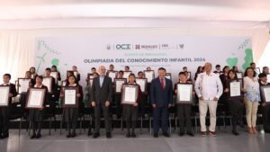 Pachuca de Soto, Hgo., 12 de julio de 2024. Para estimular y potencializar el desarrollo educativo en la entidad, el gobernador de Hidalgo, Julio Menchaca Salazar, encabezó la premiación de la Olimpiada del Conocimiento Infantil (OCI) 2024 para 32 estudiantes de educación básica que obtuvieron el mayor puntaje en su evaluación a nivel estatal.