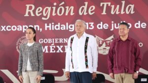 “De la mano de la próxima jefa de gobierno de la Ciudad [de México], Clara Brugada, de la gobernadora del Estado de México, Delfina Gómez, y del gobernador de Hidalgo, Julio Menchaca, vamos a hacer un gran plan hídrico para toda la zona centro del país y vamos a recuperar el río Tula, vamos a hacer un gran saneamiento”, declaró.