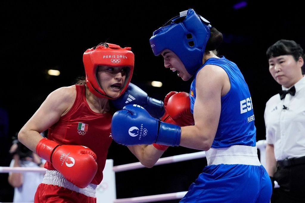 París, 28 de julio del 2024.-  La mexicana Fátima Herrena logró hoy un gran triunfo en los dieciseisavos de final del boxeo olímpico de París 2024 al doblegar 3-2 a la española Laura Fuertes en pelea correspondiente a los 50 kg. Un intenso duelo con matices muy cerrados vivió Herrera quien se mostró mejor que su rival en los asaltos iniciales. La española terminó fuerte sobre el encerado y ganó el tercer y último round, pero no pudo impedir la derrota ante la pugilista de México. Con este triunfo la mexicana avanzó a los octavos de final de los XXXIII Juegos Olímpicos de París 2024 con el sueño intacto de pelear por una medalla en la cita estival parisina.