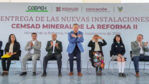 Pachuca de Soto, Hgo., 26 de septiembre de 2024. Para fortalecer la infraestructura educativa en la entidad, el gobernador de Hidalgo, Julio Menchaca Salazar, entregó las nuevas instalaciones del Centro de Educación Media Superior a Distancia (CEMSaD) plantel Mineral de la Reforma II, así como la basificación a 302 docentes del Colegio de Bachilleres (Cobaeh).