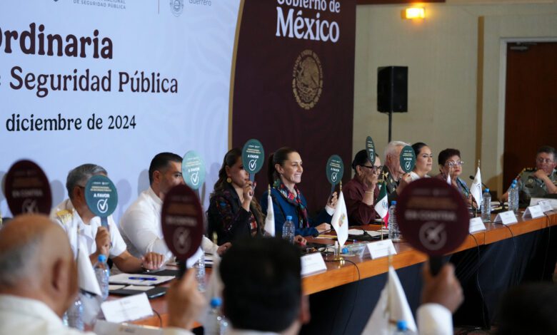Acapulco, Guerrero a 11 de diciembre de 2024.- En la 50° Sesión Ordinaria del Consejo Nacional de Seguridad Pública, la Presidenta Claudia Sheinbaum Pardo destacó que, trabajando juntos, el Gobierno de México y las y los gobernadores de todo el país se logrará la disminución de los índices delictivos. Por ello, hizo un llamado respetuoso a los mandatarios estatales para que atiendan diariamente sus Gabinetes de Seguridad, como parte del fortalecimiento de la coordinación establecida por la Estrategia Nacional de Seguridad. “El Gabinete no solamente es una presentación del parte policíaco del día anterior, es la estrategia, es la coordinación general de la estrategia. Y para que haya coordinación general de la estrategia, pues tiene que haber una cabeza; y no hay nadie mejor que ustedes que conozca su estado. Y para eso están todas las fuerzas federales, para apoyarles, ayudar y, además, hacer lo propio, pero las y los gobernadores deben asumir esa responsabilidad”, aseguró.