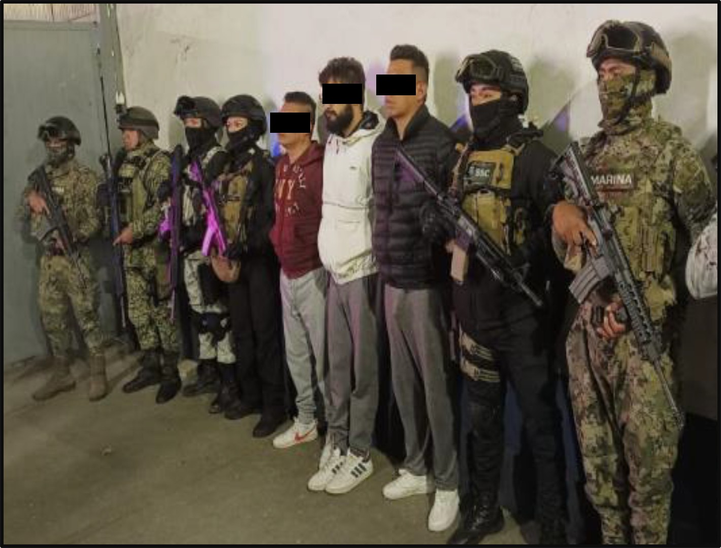 -En Ensenada, elementos del Ejército Mexicano, Guardia Nacional (GN) y Fiscalía General de la República (FGR), catearon un inmueble donde detuvieron a cuatro hombres y aseguraron cinco armas largas, dos armas cortas, 34 cargadores y 420 cartuchos.