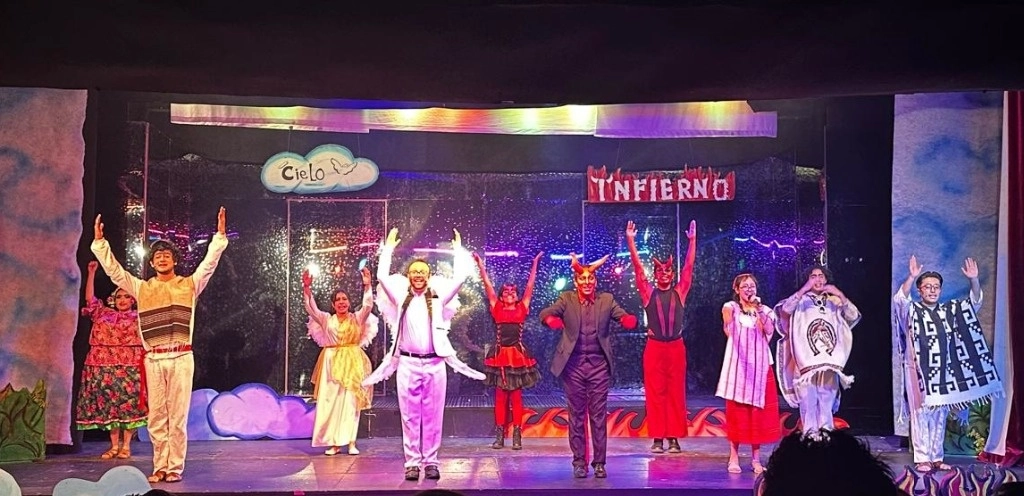 Ciudad de México, 12 de diciembre del 2024.- La lucha ha comenzado entre el Team cielo y el Team infierno en Alitas a la diabla, la pastorela de los famosos, obra de teatro que llega a su cierre de temporada este domingo 15 de diciembre en el Wilberto Cantón.