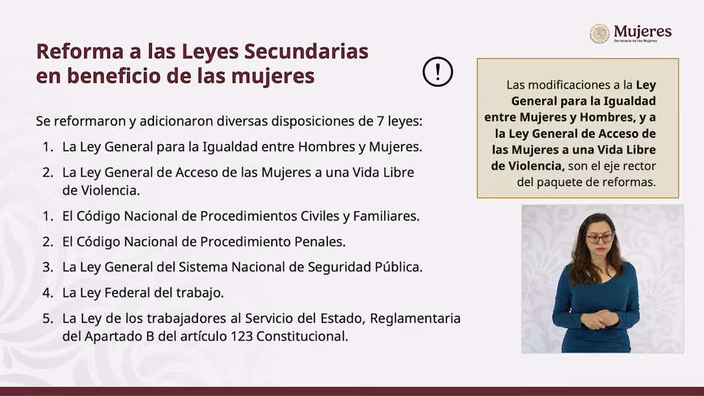 Secretaría de las Mujeres informa sobre reformas en materia de igualdad sustantiva