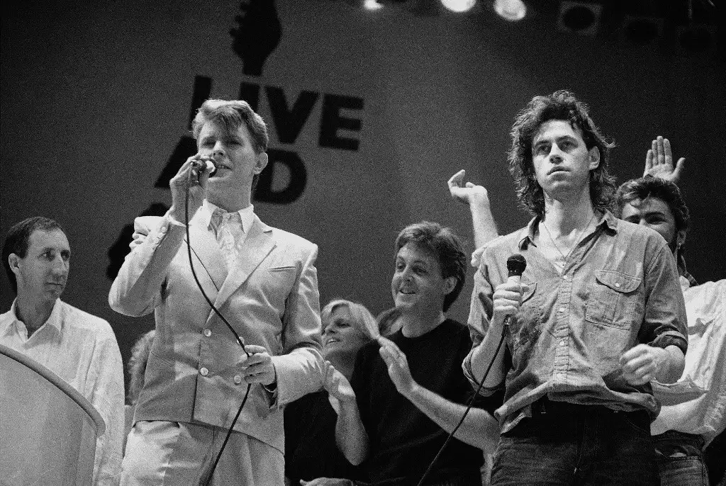 Todo comenzó con Band Aid, un grupo de estrellas de Reino Unido creado por Geldof y el músicoMidge Ure, que incluyó a Bono, Phil Collins, George Michael y muchos otros en el sencillo de 1984 Do They Know It’s Christmas?, cuyas ganancias se destinaron a aliviar el hambre en Etiopía.