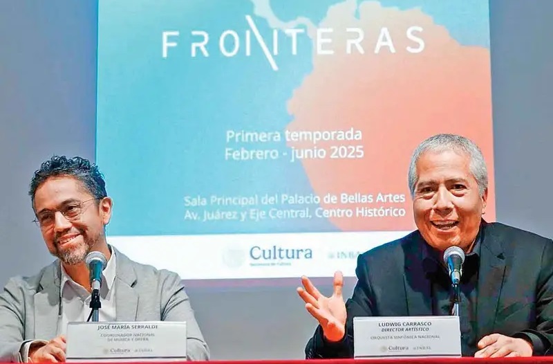 Ciudad de México, 06 de febrero de 2025.- Bajo el título de Fronteras se llevará la primera temporada de conciertos de la Orquesta Sinfónica Nacional (OSN), anunció ayer su director, Ludwig Carrasco, quien destacó el trabajo que se realizará en torno a la obra de Julián Carrillo, Arturo Márquez, Dan Brown y de compositoras como Grażyna Bacewicz (Polonia), Andrea Sarahí (México) y Niloufar Nourbakhsh (Irán).