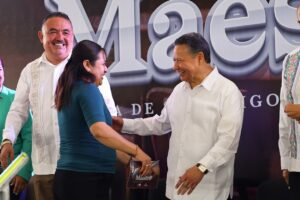 En ese sentido, el secretario de Educación Pública, Natividad Castrejón Valdez, recordó que el esfuerzo cotidiano de las y los docentes influye y deja huella en cada estudiante, pues se convierten en factores fundamentales del sector educativo: “Hoy podemos afirmar que el mejor legado de una maestra o un maestro no es sólo lo que comparte o lo que enseña, sino lo que inspira”, subrayó.