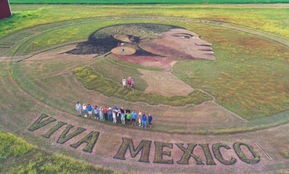 Ciudad de México, 27 de septiembre de 2025.- El artista estadounidense de arte de cultivo, Stan Herd, y su equipo, crearon una obra monumental para homenajear a la mujer indígena mexicana, misma que fue titulada como “Young Woman of Mexico”.