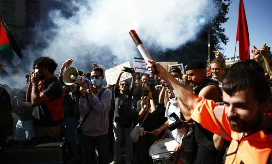 Ciudad de México, 03 de octubre de 2025.-  En varias ciudades francesas marcharon cientos de personas para expresar su rechazo al proyecto de presupuesto del presidente Emmanuel Macron, aprobado por el Congreso, y que contempla recortes al gasto social.