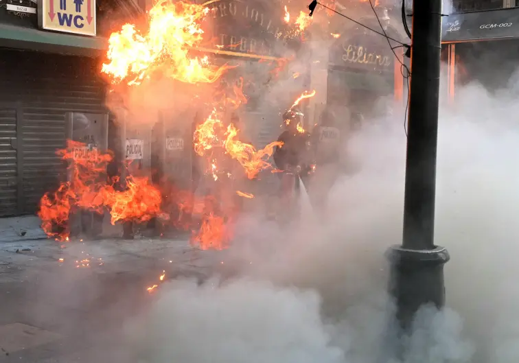 Aunque no se ha proporcionado un balance previo, las imágenes muestran cómo los agentes han roto sus filas, desesperados por evitar ser consumidos por las llamas.