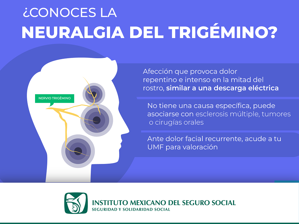 “Es importante que la población derechohabiente acuda a su Unidad de Medicina Familiar (UMF) o de adscripción si presentan dolor facial recurrente o de gran intensidad. Desde ahí, el médico puede derivar a segundo nivel de atención, para la realización de estudios y la valoración neurológica correspondiente”, señaló Guerrero Martínez.