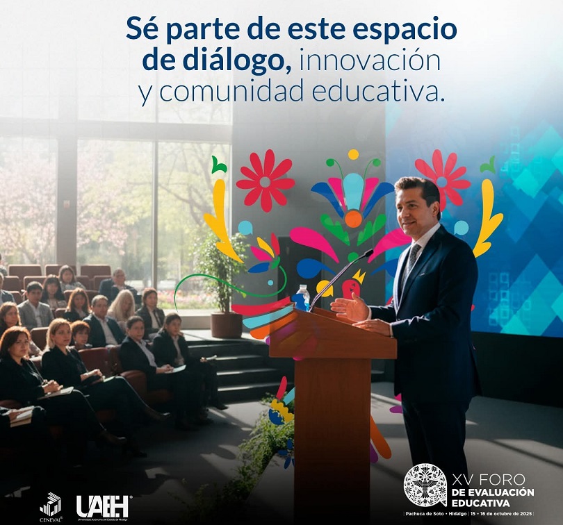Pachuca de Soto, Hidalgo, 08 de octubre del 2025. – La Universidad Autónoma del Estado de Hidalgo (UAEH) y el Centro Nacional de Evaluación para la Educación Superior (Ceneval) llevarán a cabo el XV Foro de Evaluación Educativa, los días 15 y 16 de octubre en la capital hidalguense, bajo la temática “Evaluación educativa. Evidencia para la mejora continua de la educación”.