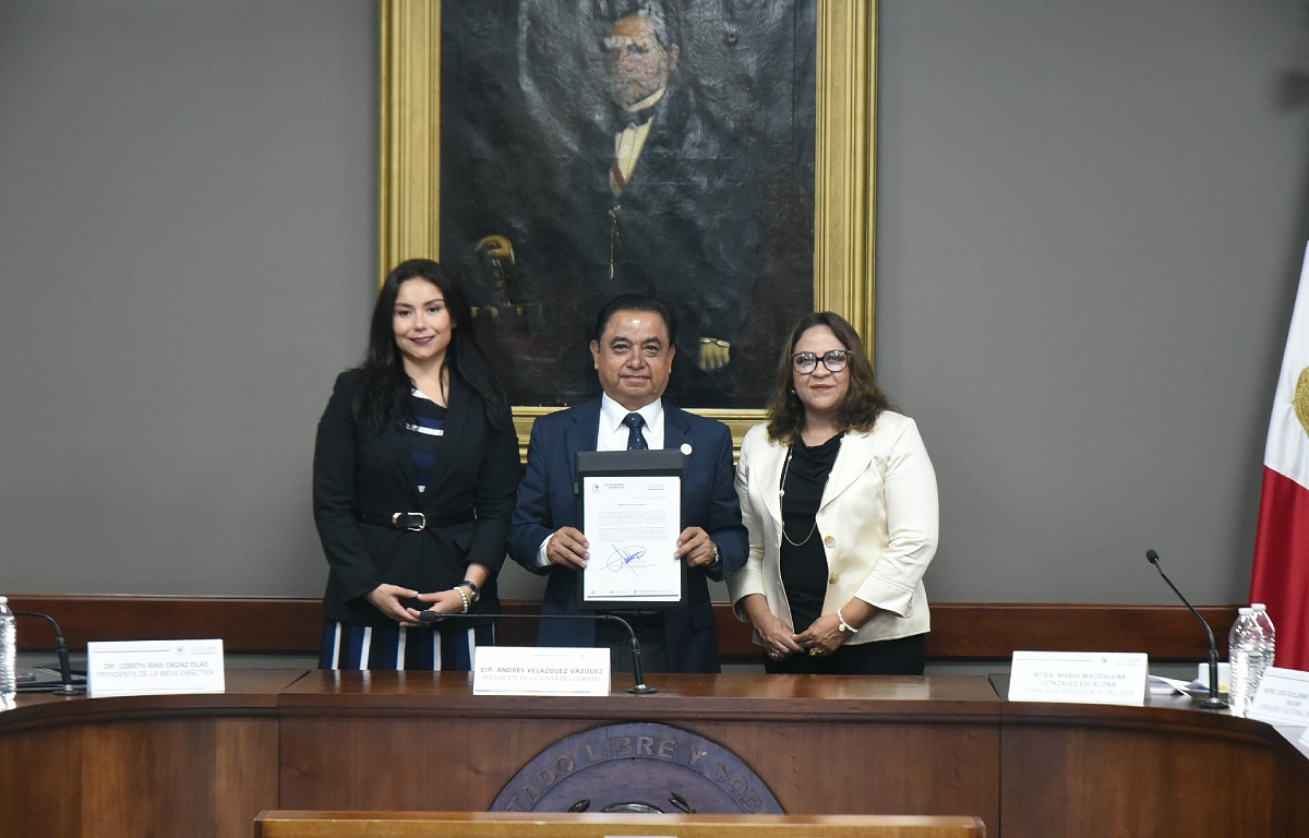 El presidente de la Junta de Gobierno, diputado Andrés Velázquez Vázquez mencionó que esta firma representa un paso importante para fortalecer la transparencia y la responsabilidad institucional durante el proceso de revocación de mandato.