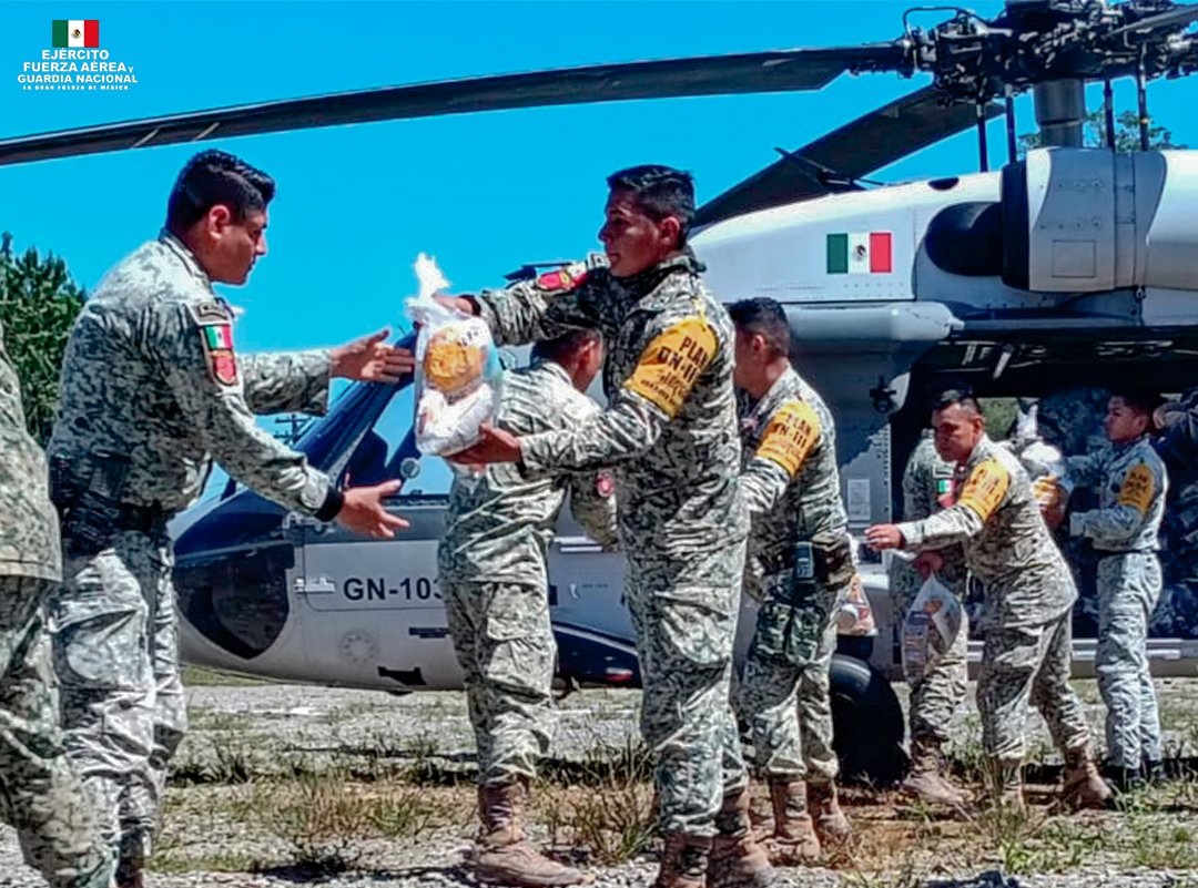 Lo anterior como parte de las acciones que la Fuerza Aérea, el Ejército y la Guardia Nacional, realizan en auxilio de las poblaciones afectadas en los estados de Hidalgo, Puebla, Veracruz, San Luis Potosí y Querétaro.