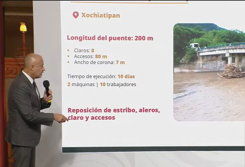 Esta mañana, durante la Conferencia del Pueblo, el titular de la Secretaría de Infraestructura, Comunicaciones y Transportes (SICT), Jesús Esteva, informó sobre los avances en la atención a la emergencia provocada por las lluvias en cinco estados del país.