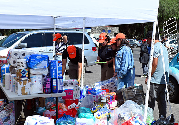 El universitario puntualizó que se recibe agua embotellada, alimentos enlatados, granos, material de construcción y para la remoción de escombros; productos de higiene personal, insumos de curación, pero no medicinas. Asimismo, indicó que solo se acepta ropa para bebés y nueva.