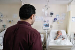 En compañía del director de Prestaciones Económicas, Sociales y Culturales, Juan Gerardo López Hernández, Martí Batres conversó con María Guadalupe Sánchez Razo y Daniel Monroy Vargas, dos pacientes que reciben atención oportuna y de calidad en las áreas de urgencias y hospitalización del nosocomio, a donde fueron trasladados vía aérea con apoyo del Gobierno del Estado de Hidalgo.