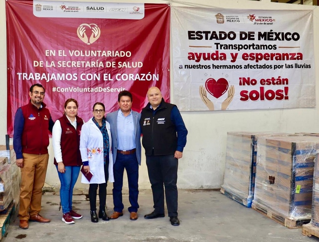 En este sentido, el Voluntariado de la Secretaría de Salud del Estado de México realizó una donación de 72 mil 341 piezas de medicamentos, que fueron entregadas en kits y transportadas en tres camiones tipo rabón cargados con insumos.