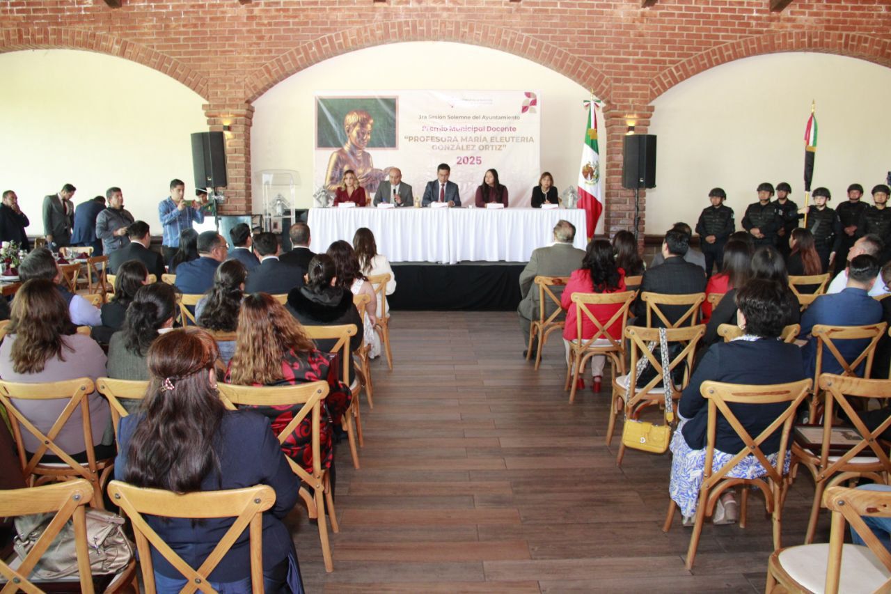Mineral de la Reforma, Hidalgo, 01 de noviembre de 2025.- El alcalde de Mineral de la Reforma, Eduardo Medécigo Rubio, entregó el Premio Municipal Docente «Profesora María Eleuteria González Ortiz», a maestras de preescolar, primaria y secundaria, como un reconocimiento a su trayectoria y años de servicio, así como una muestra clara del compromiso que tiene la Ciudad de la Comunidad con la educación en la transformación del estado y el país.