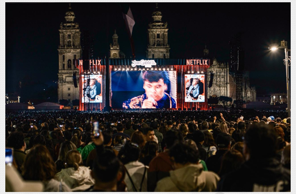 Ciudad de México, 09 de noviembre de 2025.- La noche de este 8 de noviembre, el Zócalo de la Ciudad de México se convirtió en un escenario vivo con la proyección del primer concierto de Juan Gabriel en el Palacio de Bellas Artes, llevando a más de 170 mil asistentes a un viaje en el tiempo 35 años atrás. El evento fue organizado por Netflix y el Gobierno de la Ciudad de México, a través de la Secretaría de Cultura capitalina, donde la comunidad, la música y escenas inéditas del show fueron coprotagonistas.