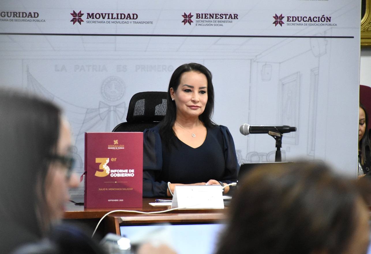 Pachuca de Soto, Hidalgo; 19 de noviembre de 2025.- En sesión ordinaria, la secretaria de Hacienda, María Esther Ramírez Vargas compareció ante el Congreso del Estado Libre y Soberano de Hidalgo, como parte del procedimiento relativo al tercer informe del estado que guardan los diversos ramos de la administración pública encabezada por el gobernador Julio Menchaca Salazar.