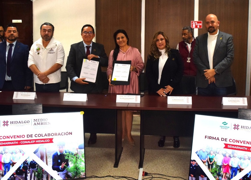 Pachuca de Soto, Hgo., 23 de noviembre de 2025.- La Secretaría de Medio Ambiente y Recursos Naturales del Estado de Hidalgo (Semarnath) y el Colegio Nacional de Educación Profesional Técnica del estado (Conalep), plantel Pachuca formalizaron un convenio de colaboración para impulsar Agrofly, un proyecto que utiliza drones para la dispersión de semillas con el fin de restaurar ecosistemas y promover soluciones inteligentes frente a los desafíos ambientales actuales.